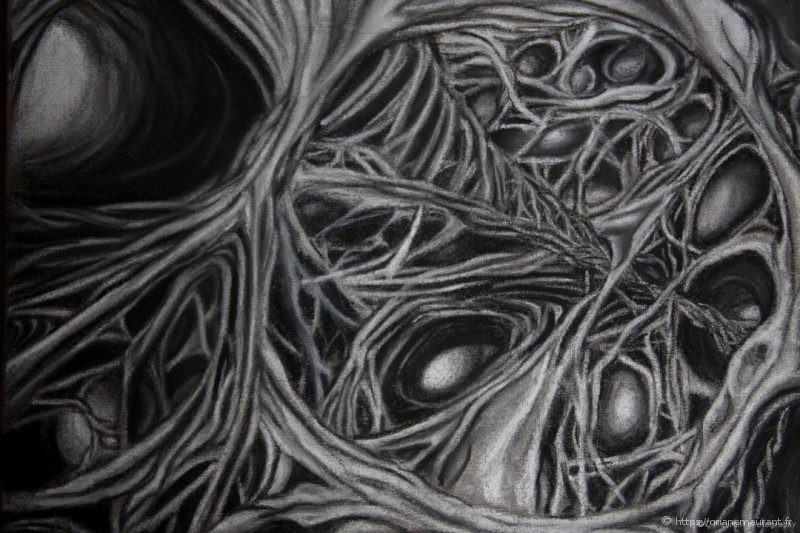 Dessin à la craie et au fusain, sur toile,